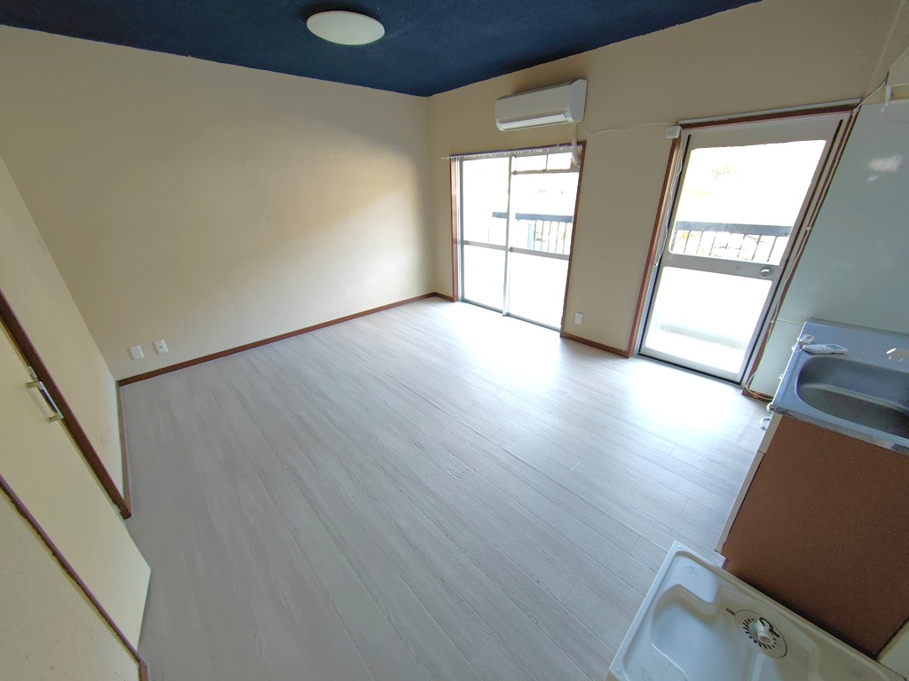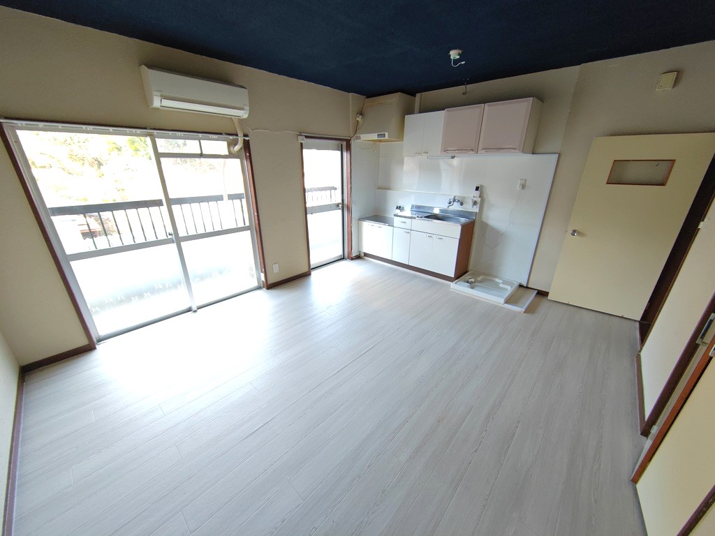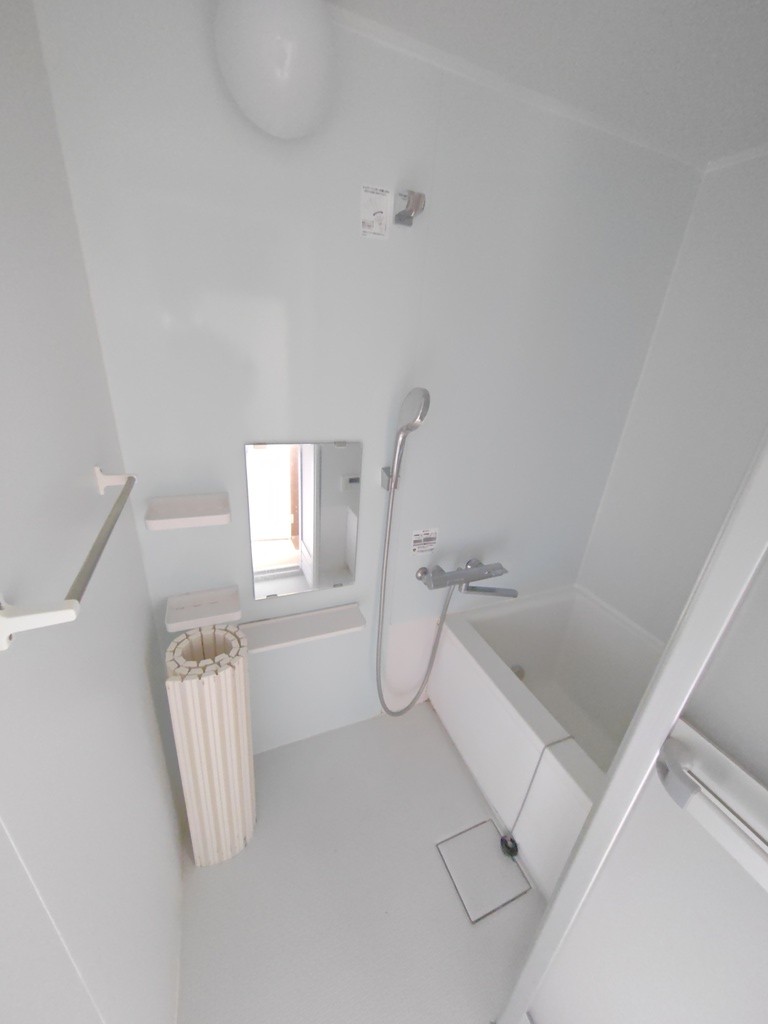 ペット相談可(猫のみ)、駐車2台可(無料:軽推奨。2台目月3,000円)、バス・トイレ別、シャワー、エアコン1台、洗面化粧台、室内洗濯置場、給湯、収納、カメラ付きインターフォン、水道(公営)、ガス(プロパン)、排水(浄化槽)、マンション5階建て(鉄筋コンクリートRC)